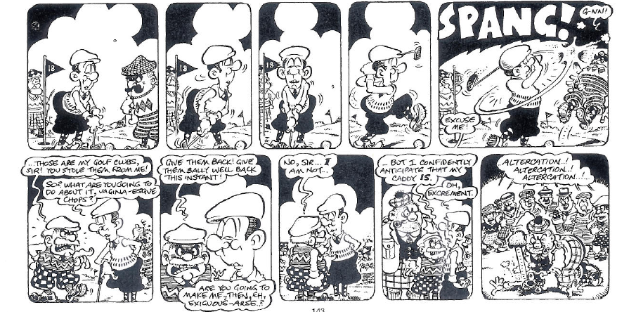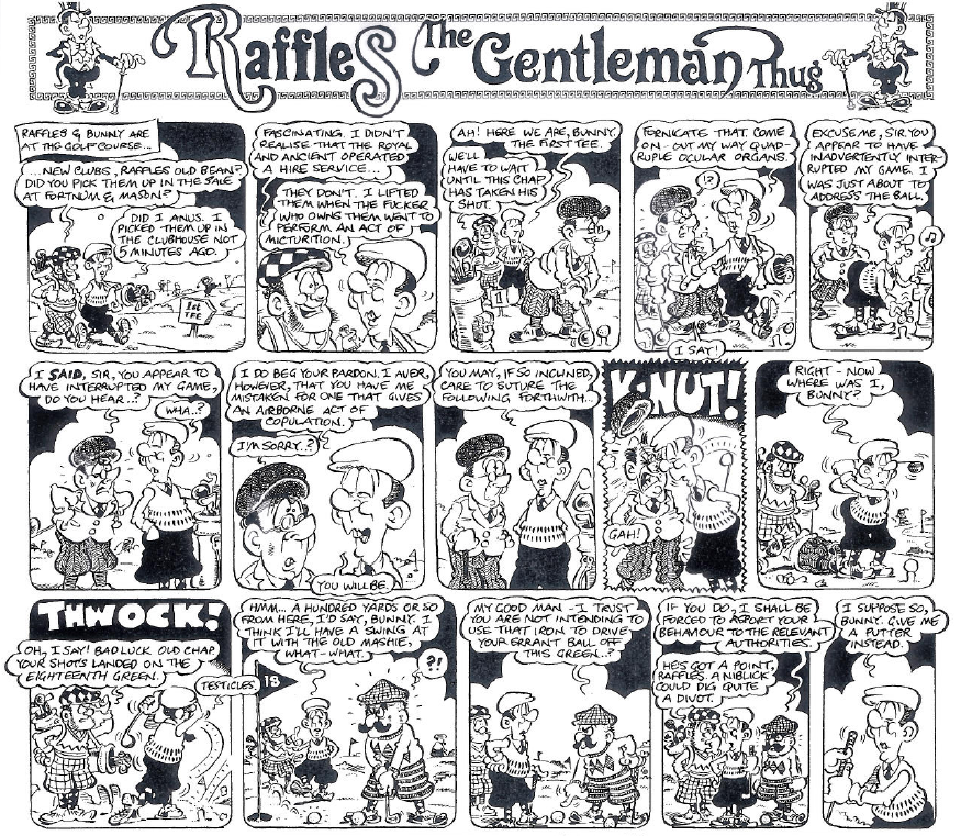 And for your final delectation, reprinted without permission but I am sure the boys at Viz won’t mind, it’s a Raffles take on a day at the course.